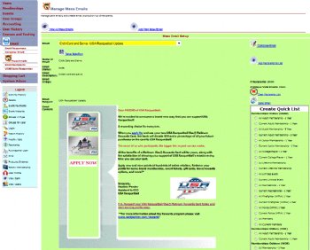 Groups can be created and users linked to specific groups. An administrator can use the email generator tool to communicate with all the users in a group. Users can join or renew their membership online by making selections from the shopping cart. Approved directors can also pay their sanctioning fees through the membership website.